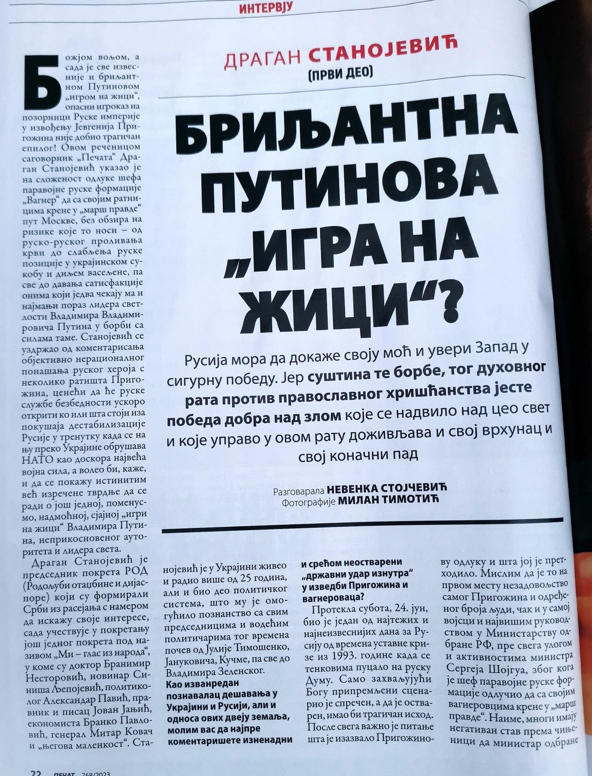 ЧланциБриљантна Путинова игра на жици – Д. Станојевић Dragan Stanojevic3 years ago3 years ago01 mins ptr https://www.pecat.co.rs/2023/07/dragan-stanojevic-ukrajinska-sluzba-preplavila-srbiju-2-deo/ Придружи се Post navigation Previous: Време је за деколонизацију А. ПавићNext: Јован Јањић – духовни оријентири Leave a Reply Cancel replyYour email address will not be published. Required fields are marked *Comment * Name * Email * Website Save my name, email, and website in this browser for the next time I comment.